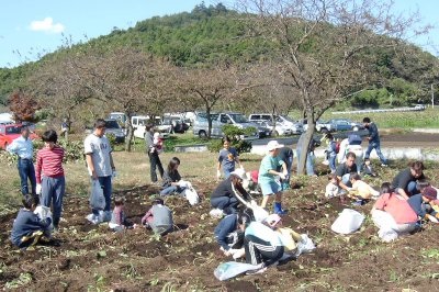 はてさて、売れるのでしょうか。サツマイモ掘り(2003.10.26)